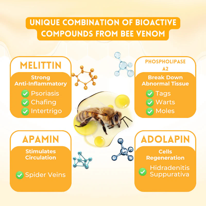 Bee venom enhances blood circulation, which is crucial for effective tissue repair. This natural boost facilitates the healing of skin tags and other blemishes, helping you achieve clearer skin more quickly. Enjoy the confidence that comes with reduced imperfections and faster recovery.
